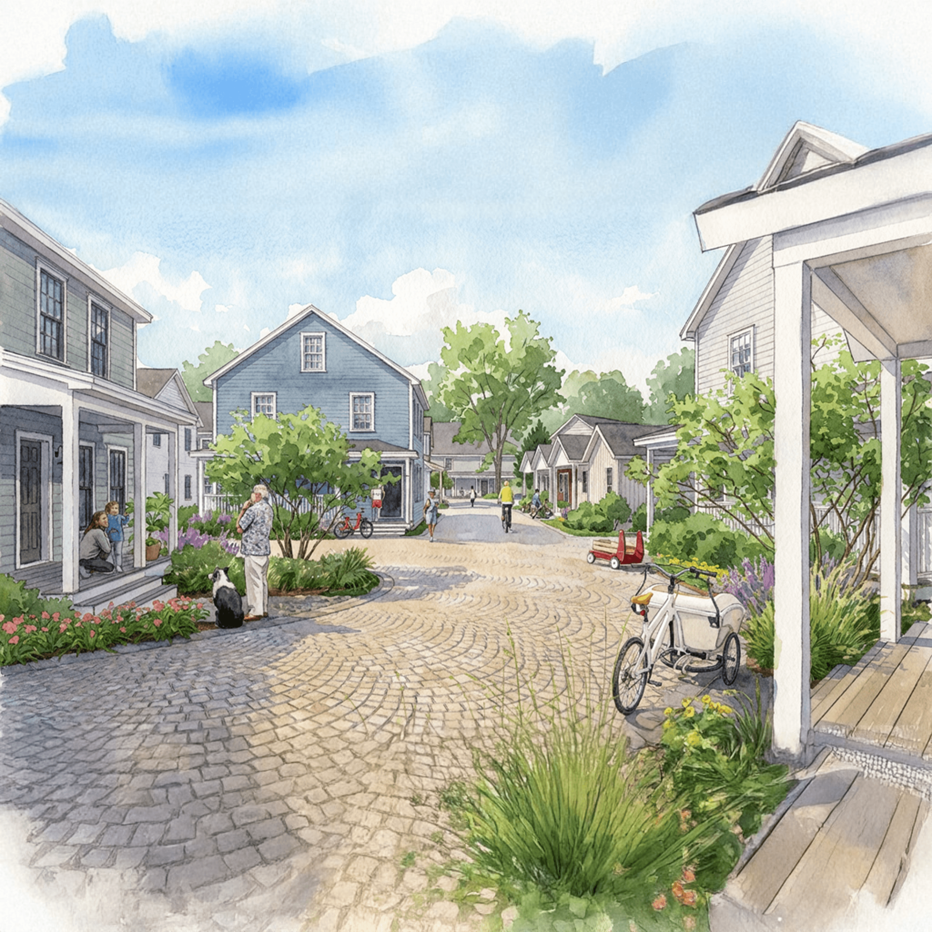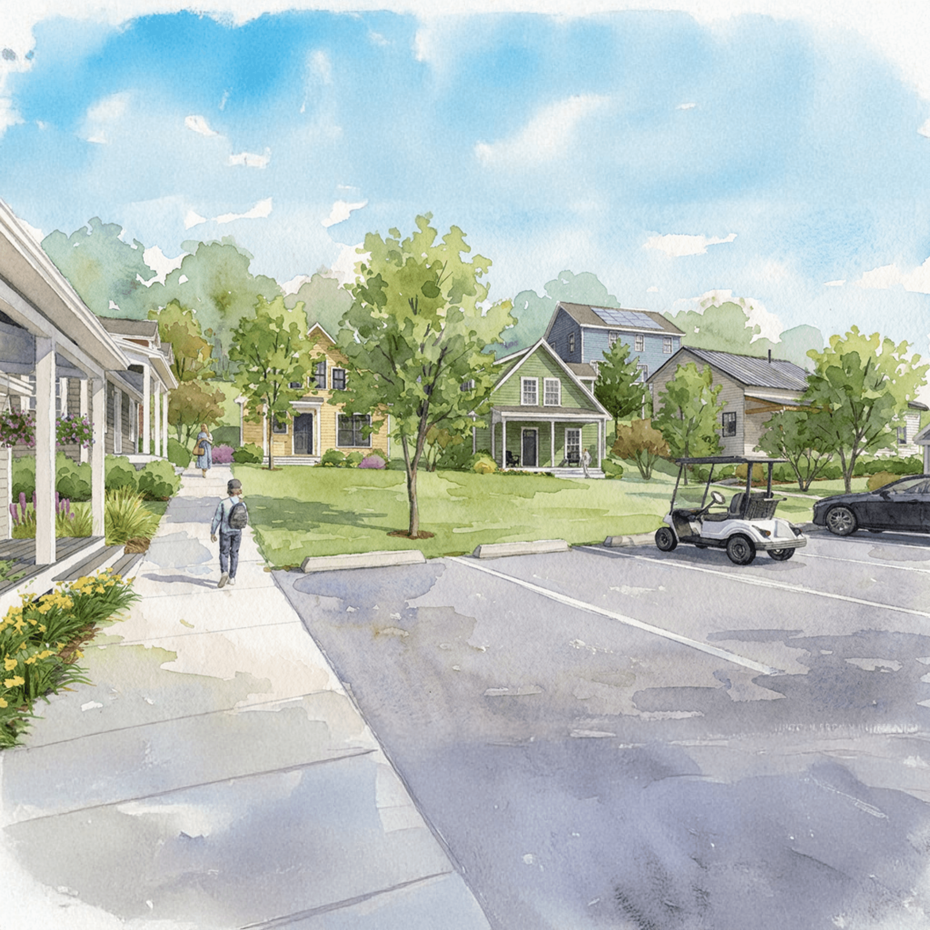 For those families who prefer traditional homes with parking, there are cottage clusters and standalone homes.